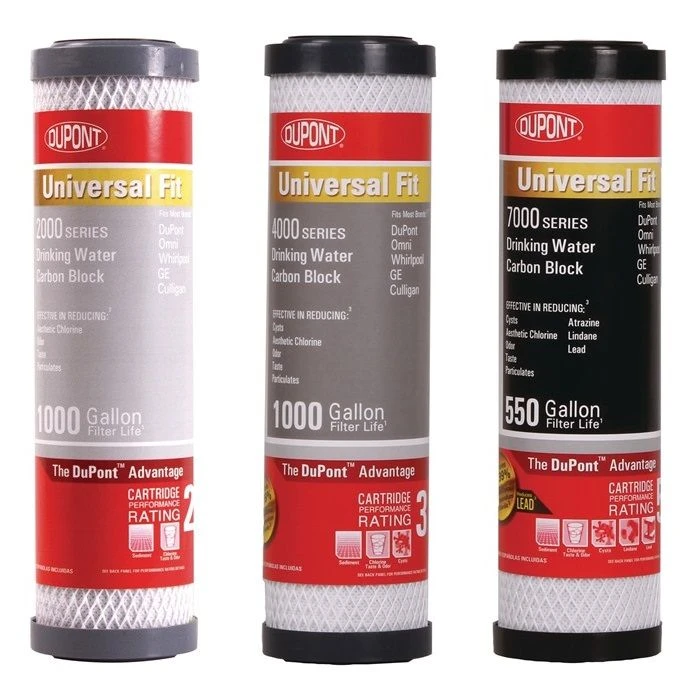 Each of these Dupont��� Drinking Water Carbon Block Cartridges are a universal fits for all DuPont��� Drinking Water systems and most other brands of standard size (10-inch) water filter systems. They also features a large diameter filter for a higher flow rate. There are three models in this filter series that all have different features: